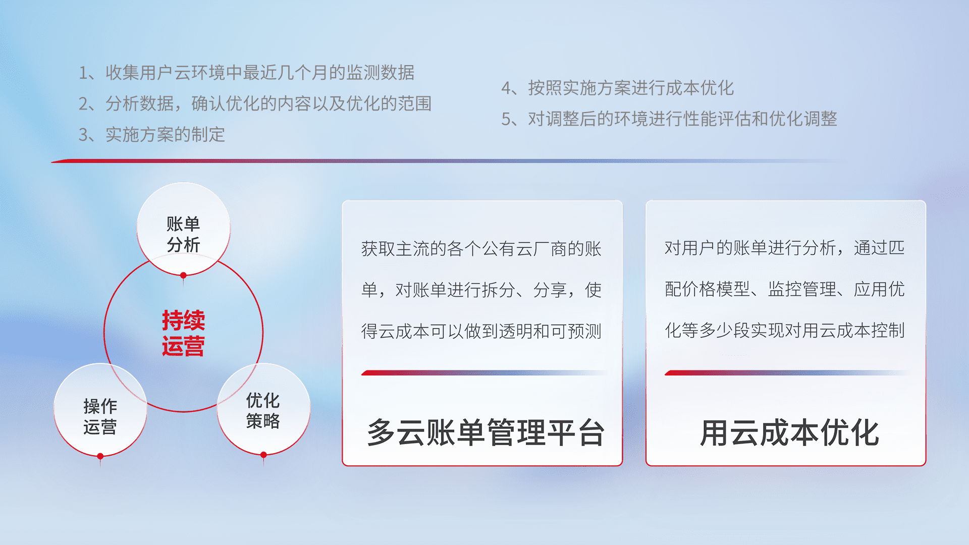 运用智能化工具分析云资源,,提供日常费用可视化工具,,,自动账单拆分,,,,成本优化云上费用,,,,降本增效。。。